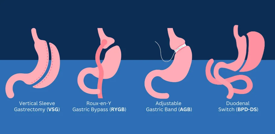 There are several types of bariatric surgery procedures, each with its own mechanisms of action and effects on weight loss. Some common types include: